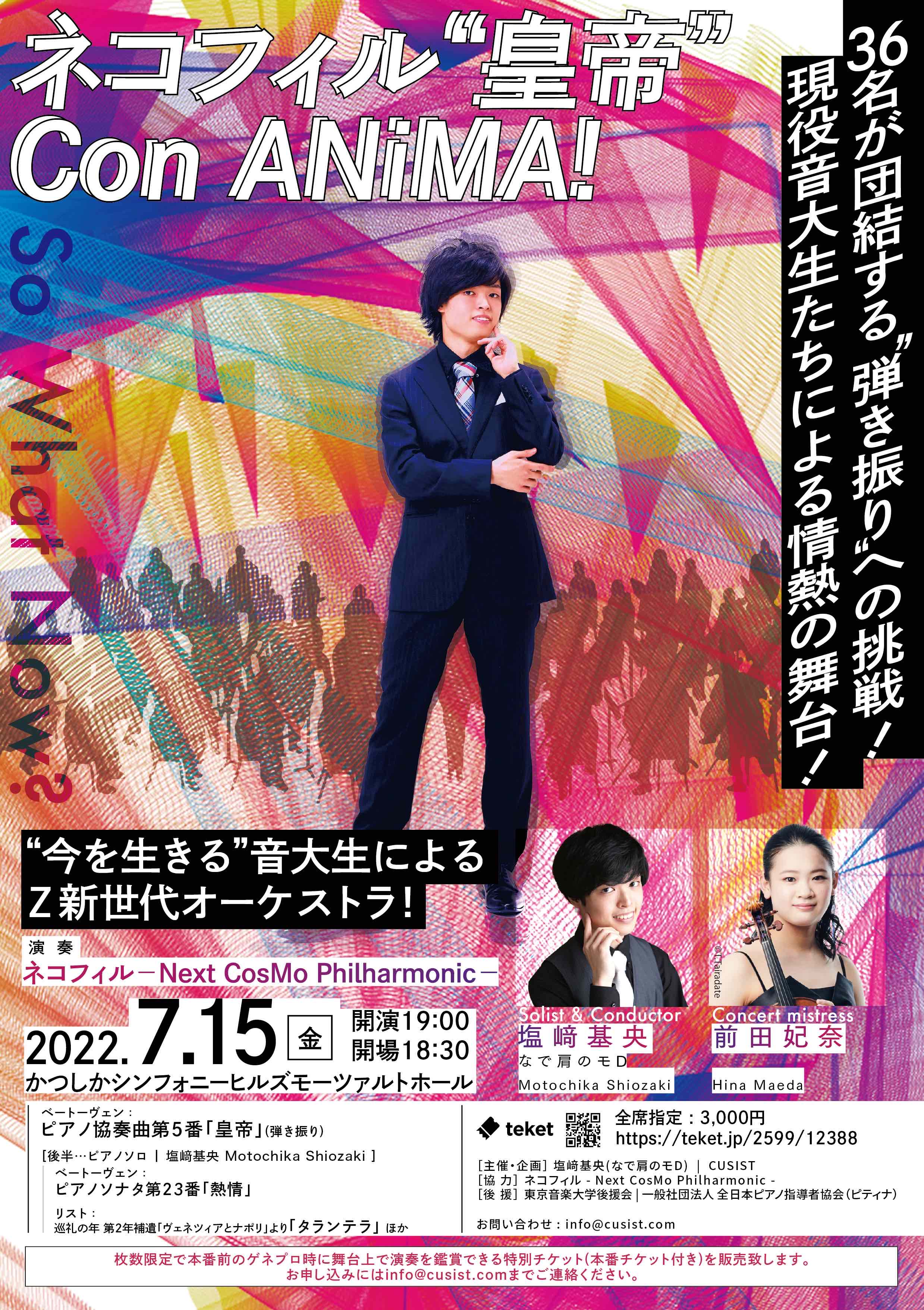 Necophil is an original orchestra that has been active with students at TCM(東京音楽大学) created at its first concert called ネコフィル “皇帝” Con ANiMA!